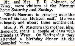 1914 Hale "W.C. Macrum and family spent Sunday at Wm. Crew's."