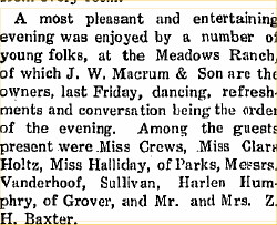 1909 Haigler "Norman Bellville of Pittsburg, Pennsylvania nephew of J.W. Macrum is visiting them at the Meadow ranch."