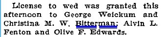 Fred F. Bitterman married Lizzie "Nickcolaus" December 27, 1904, recorded in Larimer County.