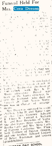 William Wenzel Dresen 1925-1986 is buried in Yuma # 48944683, with Laura Fern Dresen 1926-2005.