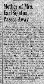 February 25, 1899 " Earl Sigafus nnd Miss Ina Johnson were married Wednesday.