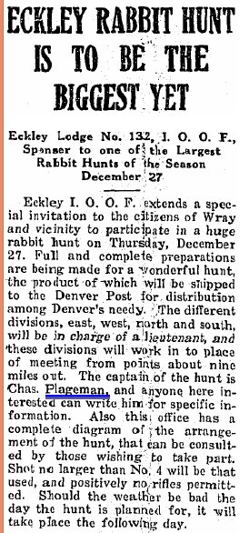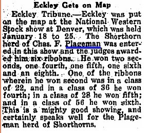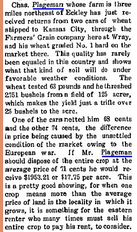 1919 Eckley "Ves Townsend is putting up his rye this week on the Plageman