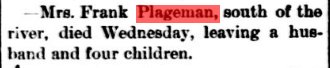 In 1910 Stanton County, Nebraska, Charles Wm. Plageman is 33, Grace R. 27,