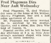 Fred William Plageman registered with an Eckley address, born June 22, 1874,