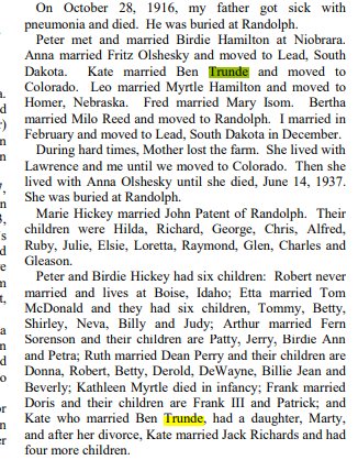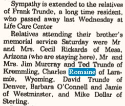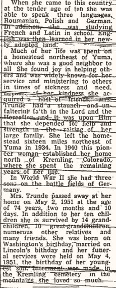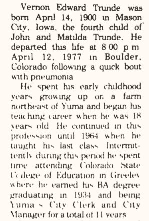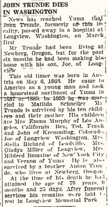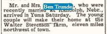 July 1922 Yuma "John Trunde went up to Denver yesterday for an indefinite stay."