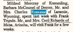 David Henry Romaine, born 9 MAY 1915 in Kremmling, Colorado, died 28 APR 1980 in Denver, Colorado, is buried in the