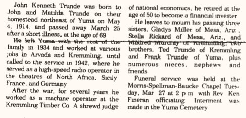 John Kenneth Trunde 1914-1984 is buried in Yuma # 74379123