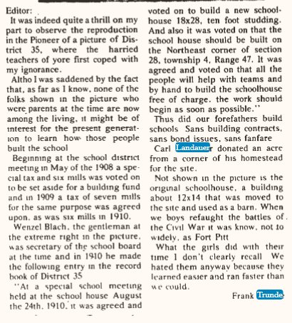 September 1930 "The North Idledale school commenced last Tuesday with Mrs. Vernon E. Trunde as teacher."