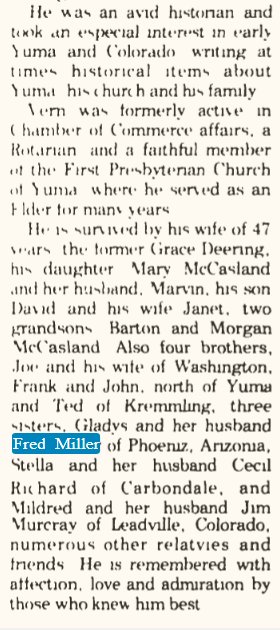 Mildred Barbara Murcray, born 2 Feb 1918 in Yuma, died 4 Sep 1999 in