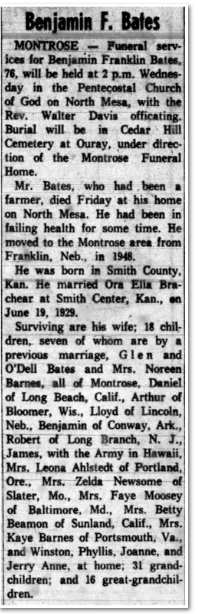 July 1913 "Dan Bates and wife left here for Wyoming last week.