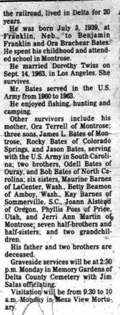 his parents, Benjamin and Ora Bates; and his step-father, Benjamin Terrell;