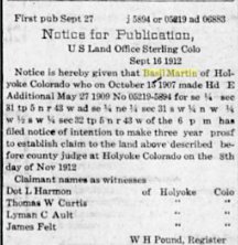 Basil proved up 200 acres in sections 31 and 32, 5N 43W in 1916.