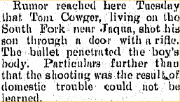about Thomas shooting Lon with Colt45 on 7 Mar 1900 in Jaqua, Cheyenne County, KS. CENSUS