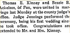 In 1910 Thomas, 27 and Bessie B. 26 are in Kirk precinct, the line above widowed Susan Achelson, 69.