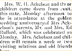 In 1902 "Mrs. Alf Palmer spent Christmas with her parents, Mr. and Mrs. Ackelson."