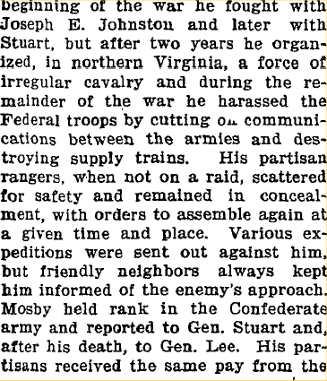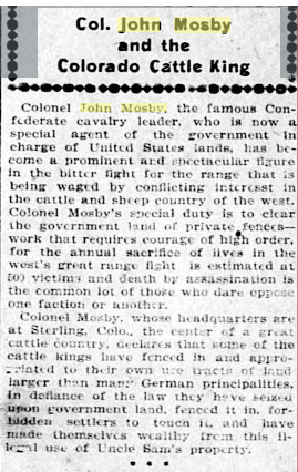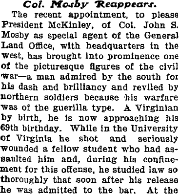 September 1901 Denver "Colonel John S. Mosby, the civil war veteran and ex-guerrilla,