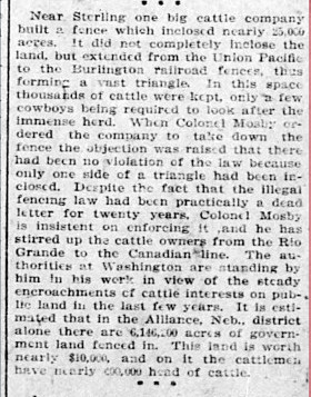 fences intact. Ten million acres of the public domain in Western Nebraska have been fenced