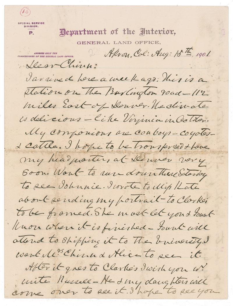 the Interior letterhead, August 15, 1901. Letter to “Chinn ” - most