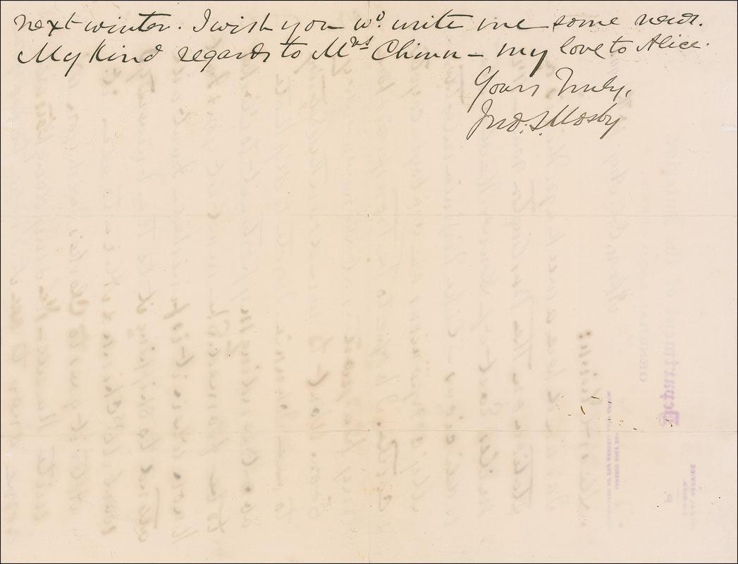 December 1897 Denver "Colonel John Mosby is the guest of his son in this city. He has