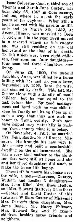 Enos married Emma Lenora Custer January 4, 1911 in Yuma.