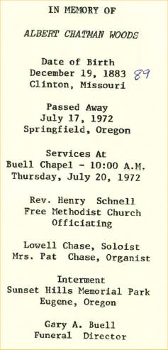 Albert Coachman /Chatman WOODS of Springfield Oregon d. 10 Jun 2002 b. 11