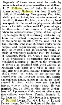 " On Thursday morning at the residence of Mr. R. B. Millikin, in Tippecanoe, by Rev. L. E. Jones, Mr. James T. Molleson, to Miss Hattie McFarland, youngest daughter of the late John Q. McFarland, of Lockington, Shelby county. For their kind remembrance of us we tender the parties our cordial and sincere congratulations, with our heart-felt wishes for their future prosperity and happiness, trusting that their ways may be "ways of pleasantness and all their paths be peace." December 22, 1866 "