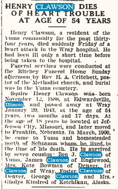 Henry Clawson is buried in Yuma