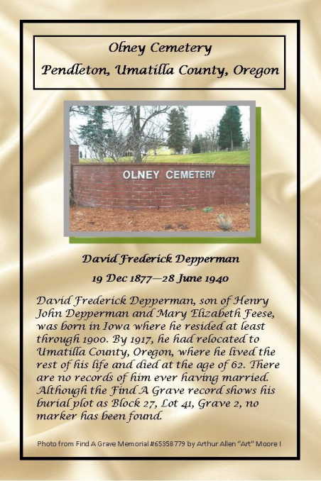 William E. Depperman 1872-1938 is buried in Clarke COunty, Iowa.