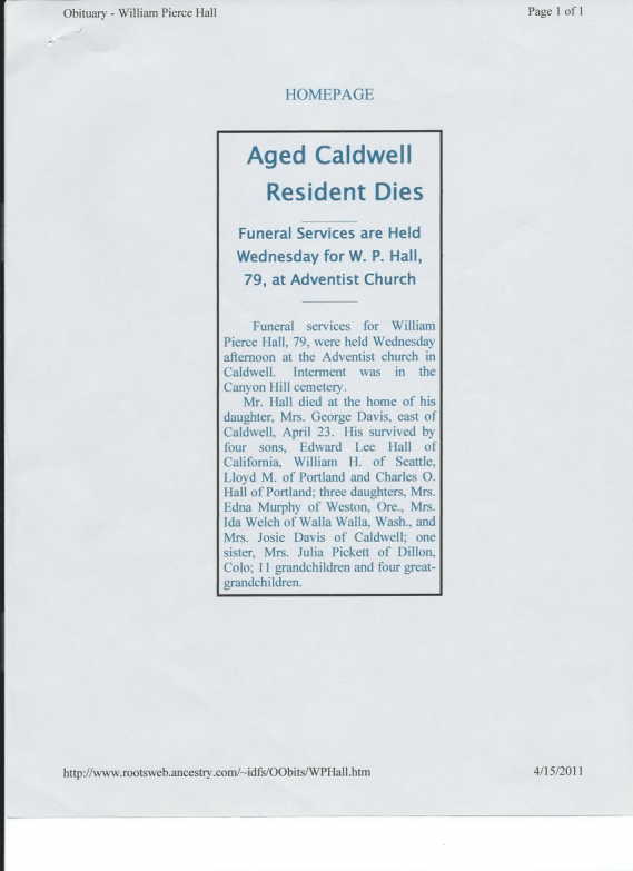 Pheilden Sturgeon Hall, per # 16992291, is buried in Cass County, Nebraska #1834-1918, with Eliabeth 1840-1915.