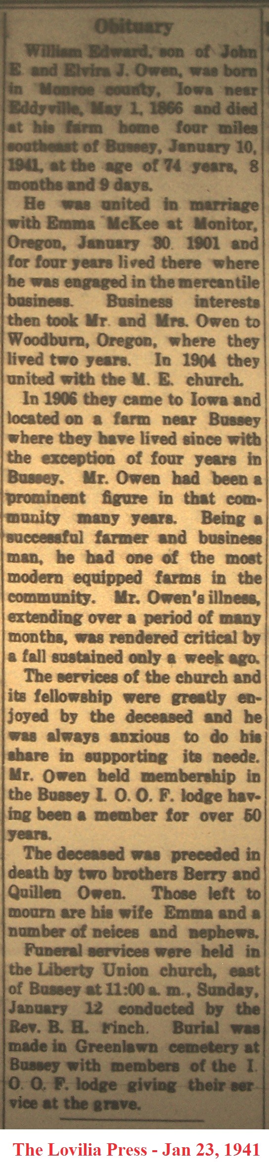 Iowa # 68157924, son of Mary Owen 1801-1851.