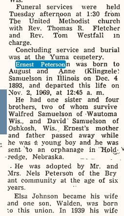 adopted son Ernest Peterson.