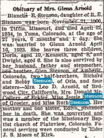 Clara Whaley married R.E. Stenson November 27, 1922, recorded in Yuma County.
