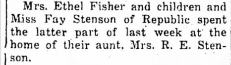In the fall of 1870, Richard Elliott Stenson moved his family from Fulton Co., IL to Republic Co., KS where he homsteaded Big Bend Township. He died 14 Dec 1872 of Chronic Dysentery at the age 29 years, 9 months, and 3 days.