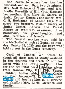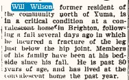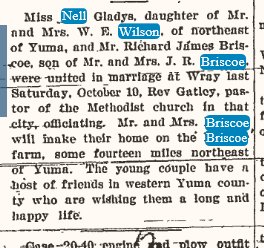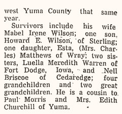 1928 Yuma "Mr. and Mrs. B. E. Wilson returned Thursday of last week from a few months visit with their children in Denver and Colorado Springs."