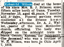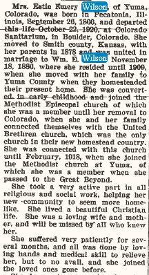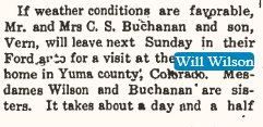 1909 Yuma "W. E. and B.E. Wilson were out from Smith Center Kansas, on Wednesday."