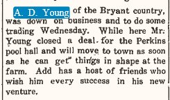 1914 "A.D. Young sold his billiard parlor to George Card this week, the latter taking possession Tuesday."