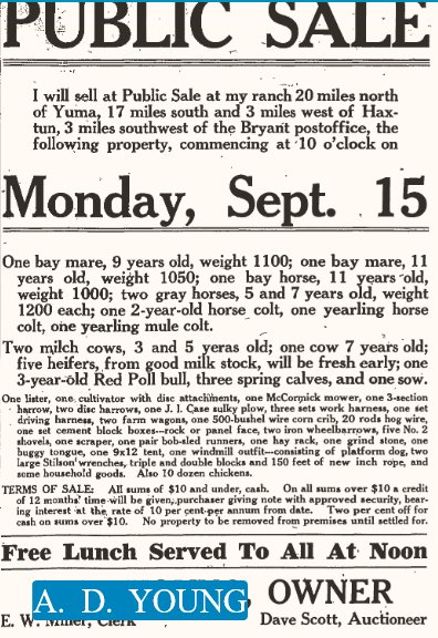 In 1916 A.D. Young was on the concessions committee of the Yuma County fair.