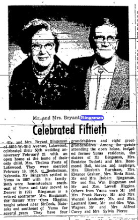 In 1967 "Mr and Mrs. Bryant Bingaman and Mrs. Beatrice Bingaman Tuckett and her daughter came from Denver."