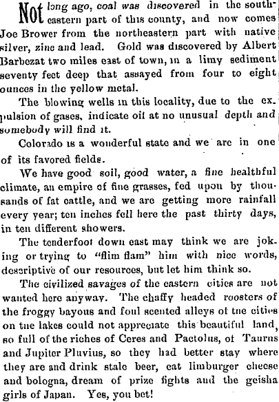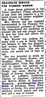 It is with profound regret that the people of the county were notified of the death of Abraham Brower, father of County Commissioner Brower, on Tuesday last. He was an old man, having reached the annual mark of 85 years. For many years he has been a resident of Yuma county, and a man who made many friends who will join in mourning his loss and extending their sympathy to the bereaved family of the son.