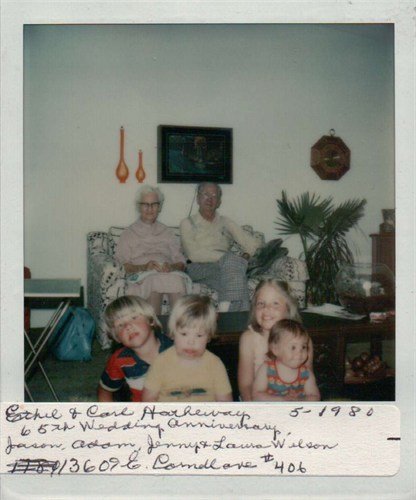 Ethel & Carl Hatheway at their 65th anniversary 1980 with great-grandchildren