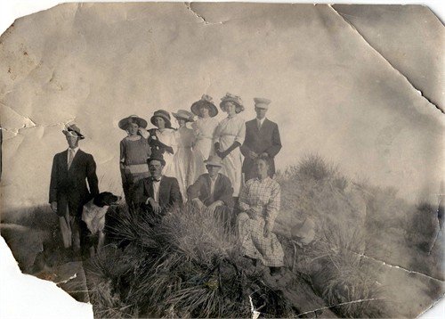 Front row: Elmer Herbaugh & dog, Clarence, Bird Edwards , Martha
