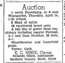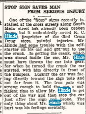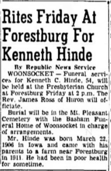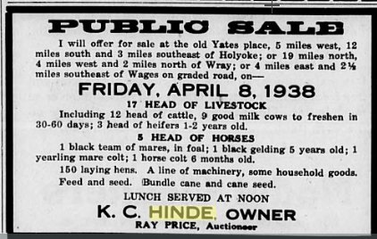 1931 LeMars, Iowa " Allen and Bob Hinde, of Haxtun, Colo., arrived Sunday morning with two trucks. They returned Tuesday with Mrs. J. R. Hinde's household goods. "