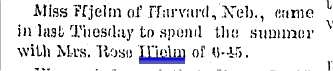n Hamilton Ohio 1923 " Rosa Hageman is home from Akron where she was called some two month's ago by illness in the home of her son Dr. Emmett Jelm "
