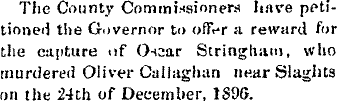Governeor McIntyre to offer a reward for Oscar Stringham, who