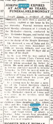 Joseph Green, 28, and Jennie C. Currant married on 20 Jan 1889 in Franklin County, Nebraska.