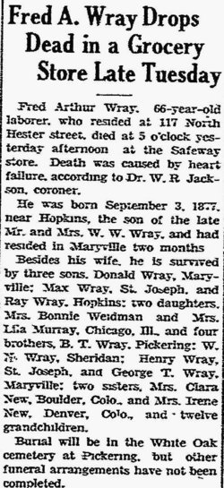 Mr. Wray is survived by five brothers all living in Missouri, and by two sisters,