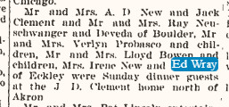 October 24, 1940 Waverly items "Mr. and Mrs. Stanley Rutledge attended the funeral of Ed Wray at Eckley Tuesday."