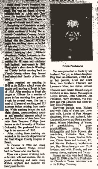 November 1941 "Mr. and Mrs. Verlyn Probasco went to Boulder Friday to visit relatives.