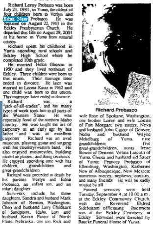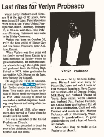 Survivors include six brothers, Floyd of Yuma, Lloyd of Curlew, Wash., Orville of McMinville, Wash.,