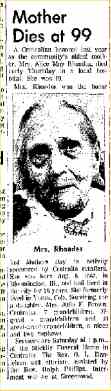 May Rhoades, died early Thursday at a local hospital. She was 99.